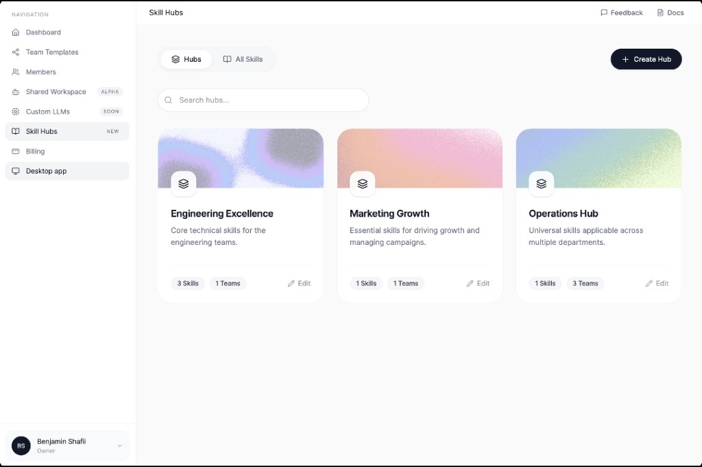 Employees get an easy-to-use desktop app with your shared skills and plugins ready to run.